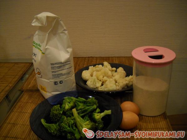 1. Якщо ви зупинили вибір на свіжій цвітної капусти і броколі, беремо 800 грам, розбираємо вилок на суцвіття і опускаємо їх на 10 хвилин у киплячу воду. Заморожений продукт необхідно, не відварюючи, розморозити.