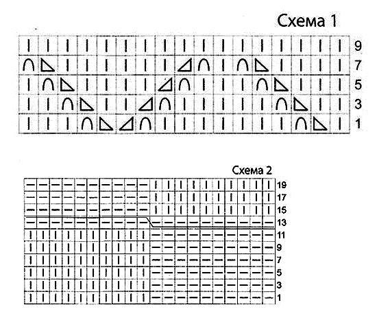 Ажурний візерунок в’язати за схемою 1. Фантазійний – за схемою 2.