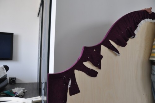 Зробіть надрізи на тканини, щоб вона могла ідеально рівно повторити рельєф головах з фанери.