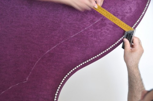 Меблевими цвяшками прикрасьте оббивку, закріпивши їх в 1 сантиметрі від краю ліжка.