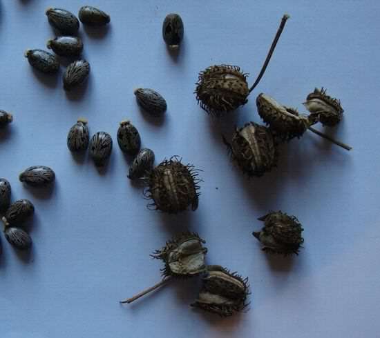- Схожість у насіння рицини звичайної погана, і бажано перед посівом зробити скарифікацію, тобто насіння злегка потерти наждачним папером, а потім замочити на ніч у стимуляторі росту. Насіння викладаються в землю на глибину 2-5 см і залишають на освітленому місці, поливати їх не треба.