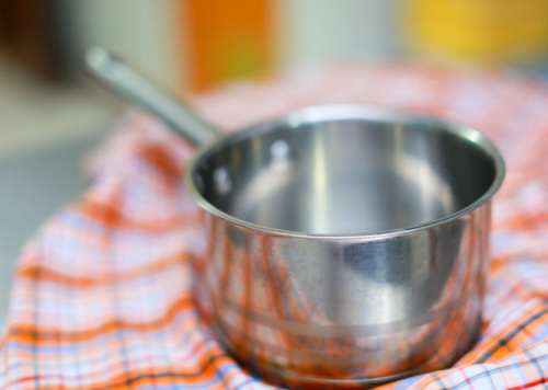 Закип’ятіть воду в металевій каструлі, вилийте вміст і використовуйте гаряче дно посуду замість праски. Цей спосіб дозволяє позбутися складок, але вимагає граничної обережності й акуратності. Пам’ятайте, що розпечена каструля може стати причиною серйозного опіку, тому використовуйте в роботі кухонне рушник або прихватку.