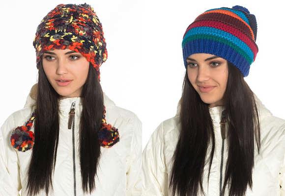 Колірна гамма таких шапок може бути абсолютно різноманітним: однотонною, меланжевої, смугастою, з контрастним помпоном.