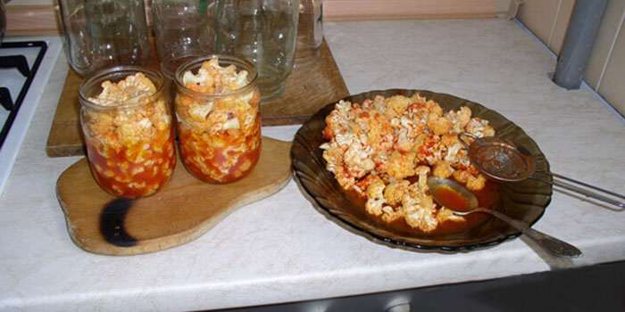 Заморожування свіжої цвітної капусти c помідорами і солодким перцем
