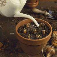 Щоб виростити тюльпани та інші квіти, висаджують цибулини тюльпанів в ящики або горщики глибиною не менше 12 див. Заповніть їх будь-яким некислим торфом, річковим піском, тирсою, а краще їх сумішшю. В кислий торф і тирсу внесіть вапно (100г на відро), свіжі тирсу потрібно додатково додати 10 г сульфату амонію на відро.
