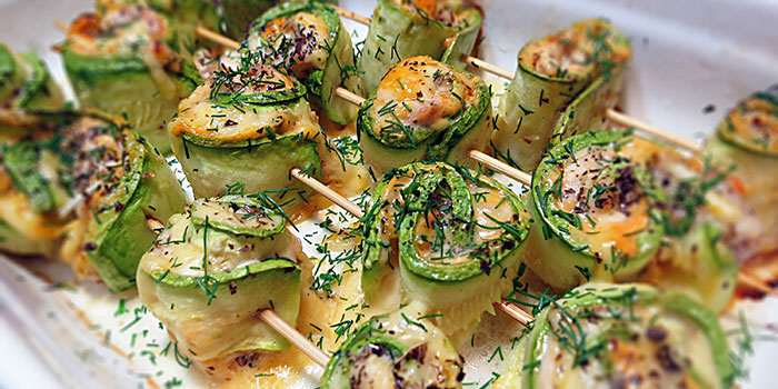 Рулетики з кабачків цукіні з м’ясним фаршем в мікрохвильовці