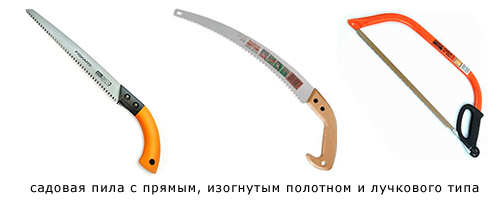 Садові пили можуть бути прямими з завужені до кінця полотном, зігнутої серповидної форми або лучкового типу.