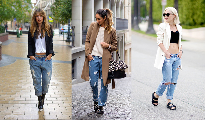 Ще одне актуальне питання – з чим носити джинси восени. Так як джинси – це ті ж штани, варто дотримуватися вищеописаних рекомендацій. В цьому році в моді кольорові джинси – бордові, червоні, коричневі, хакі. Носіть вузькі кольорові джинси з полусапожками або черевиками, відтінок взуття підбирайте до відтінку півпальта або жакета. Джинси-бойфренди не виходять з моди, їх можна носити з курткою-парком або простим жакетом, з черевиками, утепленими кросівками або навіть ботильйони на підборах.