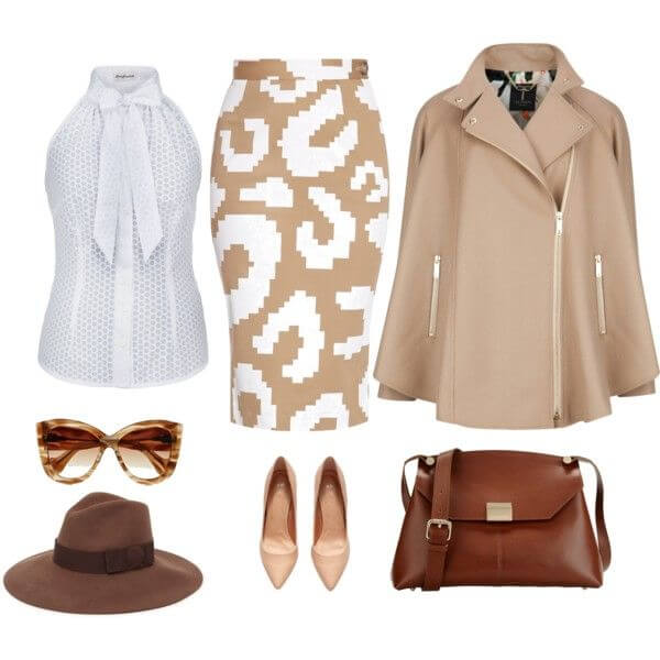 Для ділової леді актуальне питання, з чим носити восени спідницю-олівець. Сюди підійде той же укорочений кардиган простий в’язки, приталений піджак або короткий прямий жакет. Якщо на вулиці похолодало, надягайте до спідниці-олівця пряме пальто. Поділ пальта повинен бути нижче подолу спідниці. Можна надіти і півпальта так, щоб спідниця була видна з-під нього, але тоді вибирайте інший фасон пальто, наприклад, розкльошені від лінії плечей. Таке вбрання можна доповнити крислатому капелюшком.