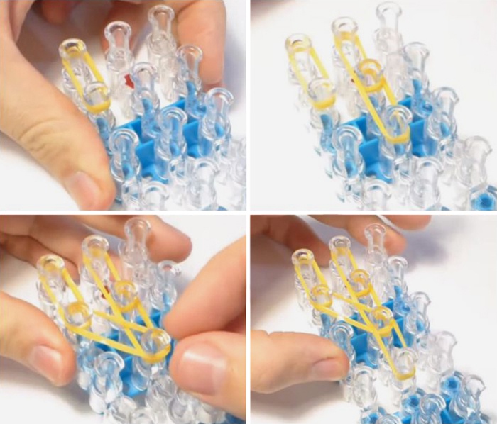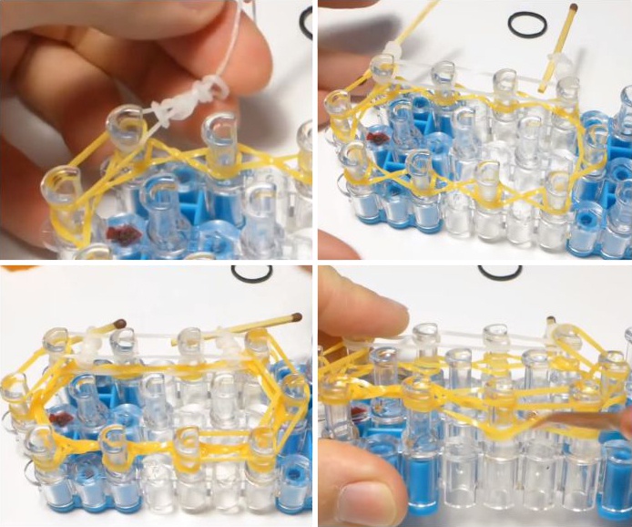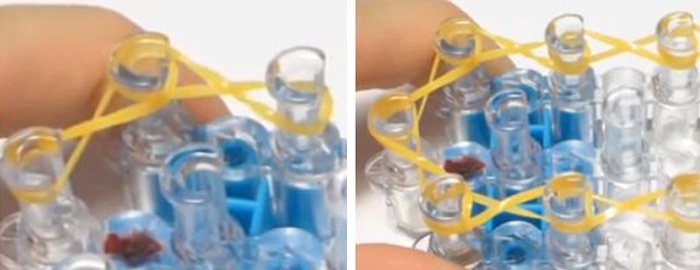 - Приступаємо до створення панцира, для цього Rainbow Loom кріпляться таким чином: