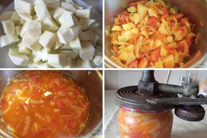 Коли сезон рясніє овочами, хочеться запастися різними смачними заготовками на зиму. Рагу в даному випадку не виняток, тому що овочі взимку дуже дорогі і багато чого просто не знайти. Такий варіант не раз виручить вас в холодну пору року, різноманітить ваш зимовий раціон, додасть особливий пікантний смак, доповнюючи будь-основне блюдо. Детальний покроковий рецепт дивіться нижче.