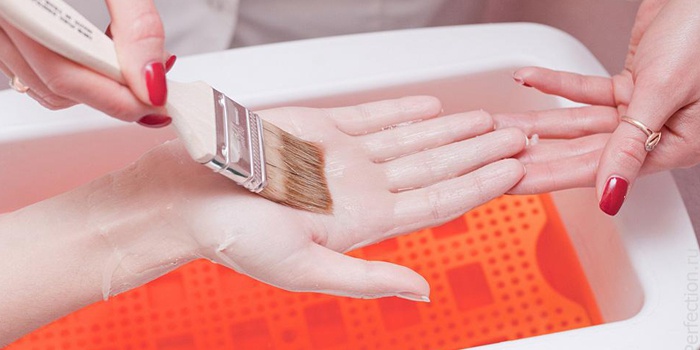 - Руки вимити, нанести крем, після цього занурити в парафін за принципом ванночки. Склад необхідно попередньо розігріти.