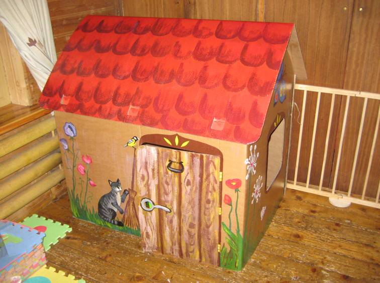 Будиночок з картону для малюка зробити нескладно, так само, як і будиночок для улюбленого вихованця.