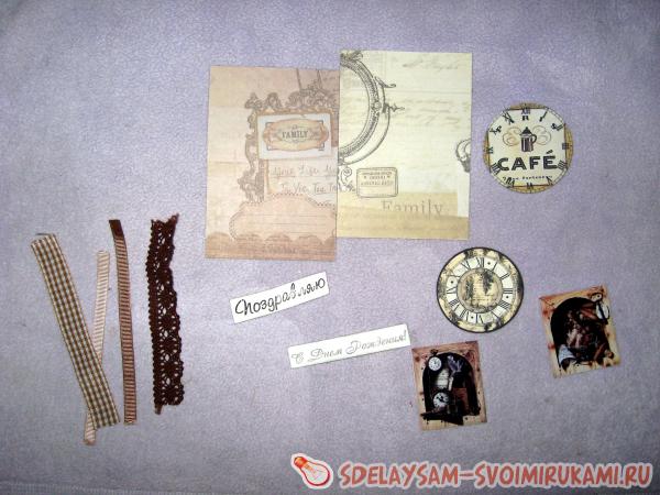 Жінки дуже часто стикаються з такою проблемою: як привітати свого чоловіка з днем народження, 23 лютого або з професійним святом. Справа навіть не в подію, а саме в тому, що ж йому такого особливого можна подарувати. Ну, от уявіть на хвилинку, що це мало знайомий чоловік: колега, директор або далекий родич. Чим його можна здивувати, якщо він Вам мало знайомий? Погодьтеся, це досить складно і для цього потрібно дуже добре подумати і постаратися. Інша справа, якщо цей чоловік, чоловік, брат, син, і то досить складно вгадати, що саме бажано отримати в подарунок саме зараз, щоб було і приємно, і корисно, і оригінально. Подарунок є подарунок, а от що ж за свято, якщо не залишити після нього теплі, душевні слова з привітаннями. А написати такі слова можна у вітальній листівці, яка і збереже пам’ять про Вас і про Ваше ставлення до цієї людини. Особливих проблем придбати готову листівку не складе, але краще зробити вручну, це додасть святу інтригу і якусь загадку. Ось зараз ми і розглянемо кілька варіантів виготовлення невеликих чоловічих листівок в техніці скрапбукінг. Гарний папір, кілька кольорових картинок і ще деякі скрап матеріали дозволяють творити такі чудові листівки, що здивують і порадують будь-якого чоловіка.