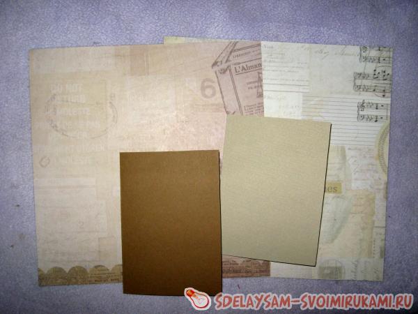 З скрап-паперу вирізаємо по два прямокутника на кожну листівку 8,2*12,2 див. По одному клеїмо на задні частини листівок.