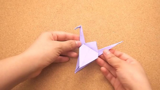 Як зробити журавлика з паперу, використовуючи отриману заготовку? Візьміться пальцями однієї руки за голову, а другий – за хвіст. Обережно потягніть їх в протилежні сторони. Фігурка розправиться. А голова і хвіст будуть розташовані по зовнішніх краях майбутньої птиці.