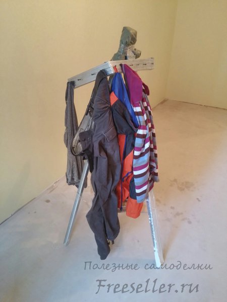 В продовження теми будівельних гардеробів, хочу запропонувати ще один варіант виготовлення переносного гардеробу вішалки з підручних кошти.