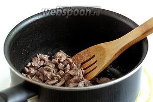 М’ясо обсмажити в невеликій кількості рослинного масла, не солити. Можна використовувати улюблені спеції, я злегка припорошила улюбленим хмелі-сунелі. Рідина повинна вся википіти.