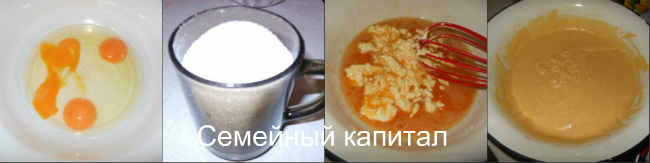Для цього яйця збити з цукром. Маргарин розтопити і трохи остудити. Влити в збиту масу.