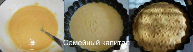 Форму змастити маслом. Викласти на нього тісто, розрівнявши за розміром форми і трохи піднявши бортики. Поставити в духовку і випікати до злегка золотистого кольору. Щоб тісто не позурилося, наколіть його в декількох місцях виделкою.