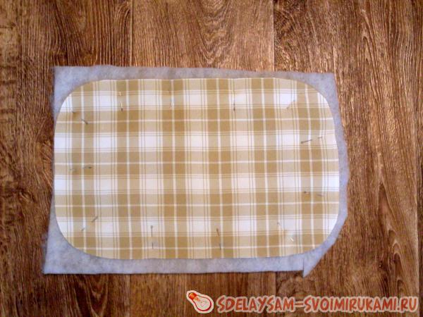 На швейній машинці слід скріпити тканина, синтепон допоміжної строчкою на відстані 5 мм від зрізів, шпильки прибрати.
