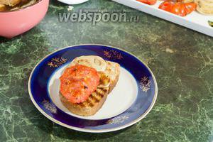 На грінки викладаємо помідор і білий баклажан.