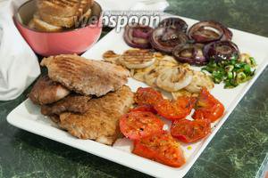 Всі загриллировано, тому приступаємо до збірки нашого смачного, теплого ескалопи з гренком і овочами.