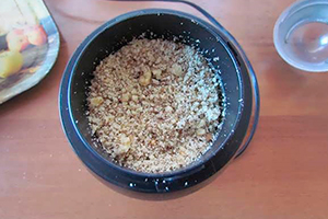 Готову гарбуз викладіть на блюдо і присипте горіховою крихтою.