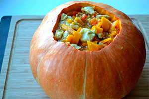Гарбуз можна фарширувати різними начинками – м’ясом, з грибами, рисом або гречкою, сиром з сухофруктами, яблуками і т. д.