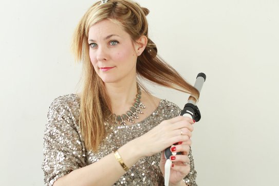 Використовуючи плойку, завийте волосся великими локонами. Щоб отримати потрібний ефект, тримайте прилад горизонтально.