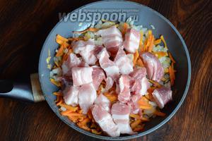 Потім кладемо нарізані шматочки м’яса.