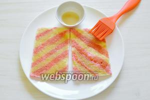 І зверху викладаємо другу смужку, просочений сиропом.