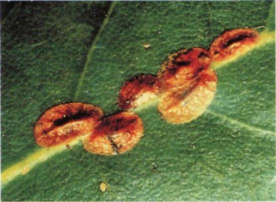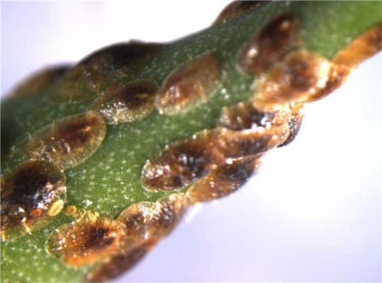 Зовні розпізнати цього паразита дуже просто. В основному вони мають коричневе забарвлення і кріпляться поблизу від жилок рослини.