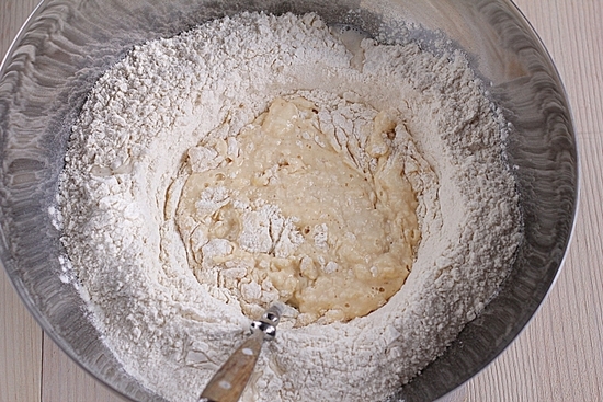 - Об’єднати вміст двох ємностей і додати борошно