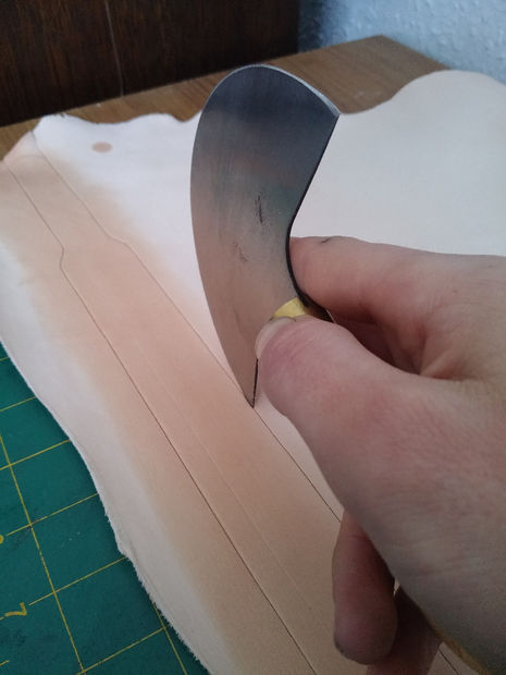 3. Задоволені розміткою на шкірі – вирізаємо заготовку гострим ножем. Ножицями це зробити буде дуже складно, і напевно не вийде рівно. Не поспішайте, тут справа не в швидкості, а в акуратності, і не обов’язково домагатися прорізання шматка шкіри наскрізь за один рух – можна зробити кілька розрізів по одній лінії, т. к. їх легше виконати, і вони часто просто необхідні, особливо якщо ви працюєте з товстою шкірою.