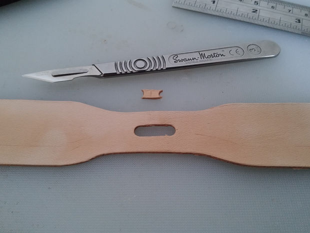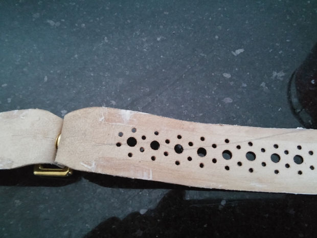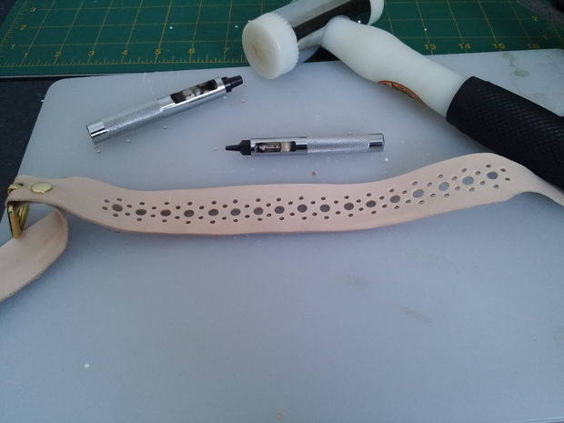 Нарешті, виконуємо дизайн з отворів на верхній частині нашийника точно також: намітка, потім використання ножа.