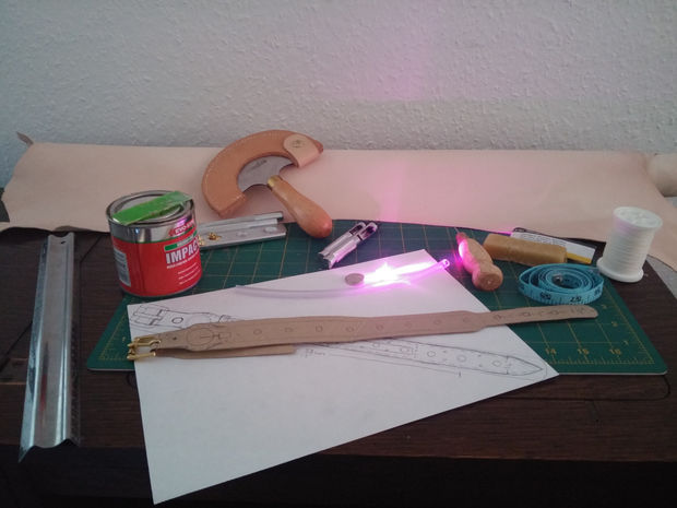 – Міцна, тонка і гнучка шкіра (краще всього підійде цапина); для шлейки також підійде дуже щільний і товстий матеріал, начебто брезенту або фетру;