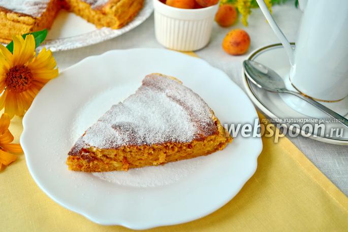 Ось і наш абрикосовий оковита. Коли тільки дістанете його, він буде високий і пишний. Але він осяде трохи, це не смертельно, все одно десерт буде ніжний, смачний і ароматний. Верхня частина виходить більш пориста, низ щільніше. Коли охолоне, можна подавати до столу. Посипати пудрою бажано прямо перед подачею, інакше вона розчиняється і стає непомітною. Як варіант, можна на кожен шматочок покласти ложечку збитою з цукром сметаною. Приємного апетиту.