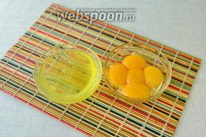 Яйця розділити на білки і жовтки. Тільки, щоб до білків не потрапило ні краплі жовтка.