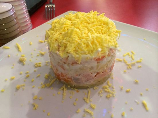Якщо вам не подобається салат «Мімоза» з сиром, пропонуємо менш калорійний варіант – з яблуком.