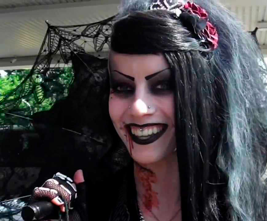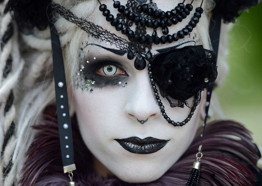 Макіяж готовий – це чорний олівець для очей, темні тіні, темні відтінки обов’язково матовою помади, підкреслюється білизна особи за допомогою пудри, нігті покривають чорним лаком. Макіяж обов’язковий як для дівчат, так і для юнаків.