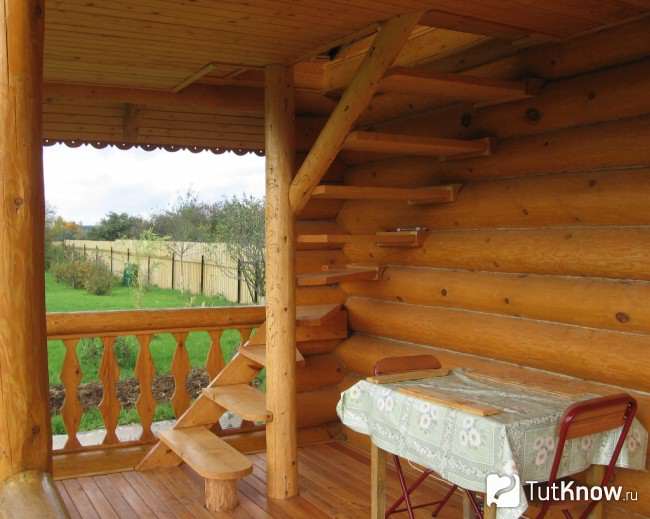 Оскільки тераса — більш легкий об’єкт в порівнянні з лазнею, для її облаштування можна використовувати брус перетином від 15 див. Несучі вінці для тераси не повинні бути відірвані від основної будівлі.