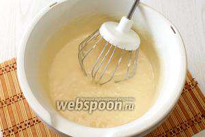 Вмішуємо борошно і розпушувач. Тісто виходить досить густим, але ллється.