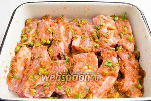Приготування страви за рецептом «Свинячі реберця в маринаді з цибулі і часнику»: