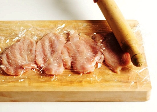 Спочатку потрібно підготувати філе. Головне завдання – отримати тонкі пластини курячого м’яса. Способів для цього існує декілька.