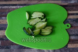 Готуємо всі необхідні продукти для шаурми. Картоплю заздалегідь смажимо на сковороді, немає нічого складного. Огірки нарізаємо соломкою.