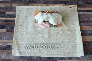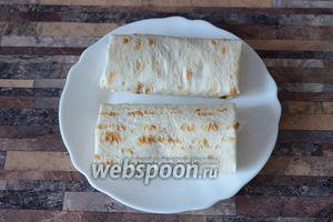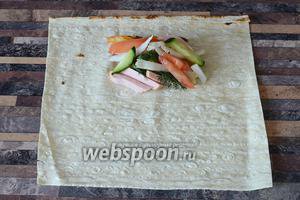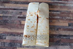 Загортаємо лаваш, звернувши спочатку 2 сторони.