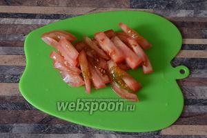 Також нарізаємо і помідори.