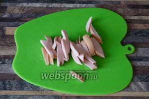 Нарізаємо соломкою ковбасу.