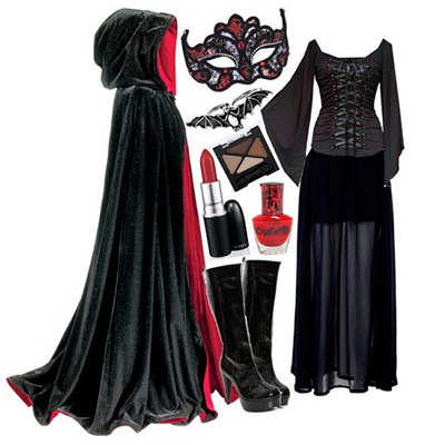 Мабуть, вампір, на хеллоуїн – найбільш популярний образ. Він підходить як хлопцям, так і дівчатам. Юним леді, щоб перевтілитися в вампіршу можливо буде досить просто добре поритися в своєму гардеробі і зробити відповідну зачіску і макіяж. Ви можете орієнтуватися на спокусливий або готично-романтичний стиль. Бажано щоб у вашому вбранні переважали чорні і червоні тони, допускаються і фіолетові. Основою костюма може послужити будь чорне плаття або спідниця і топ. Зробити образ більш ефектним допоможе корсет. Добре його доповнять прикраси в готичному стилі, чорні рукавички, колготки в сіточку і високий каблук.
